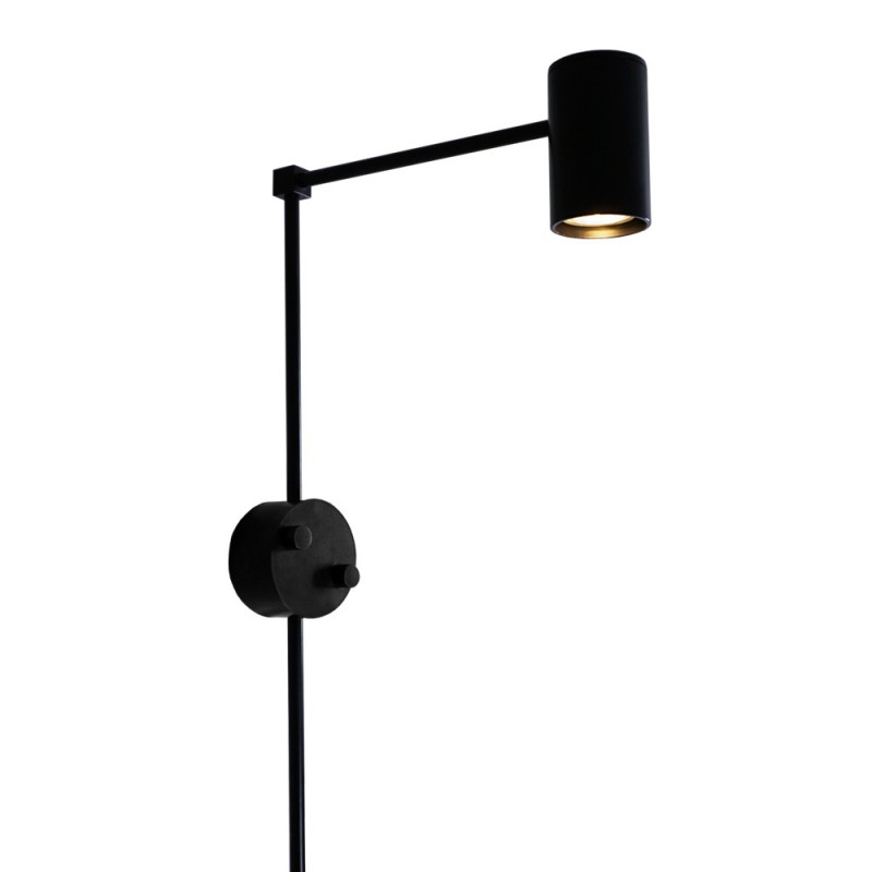 Prezentowany kinkiet Dakata K polskiej marki Shilo wykonany został z wysokiej jakości stali w kolorze czarny mat z kloszem w kształcie niewielkiej tuby na wymienne źródło światła Led