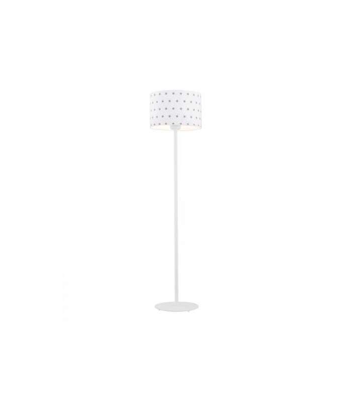 Lampa dziecięca, wykonana z wysokiej jakości stali lakierowanej w kolorze białym z białym abażurem w szare gwiazdki. Wysokość lampy 165 cm, średnica klosza 48 cm. Stosować żarówki Led