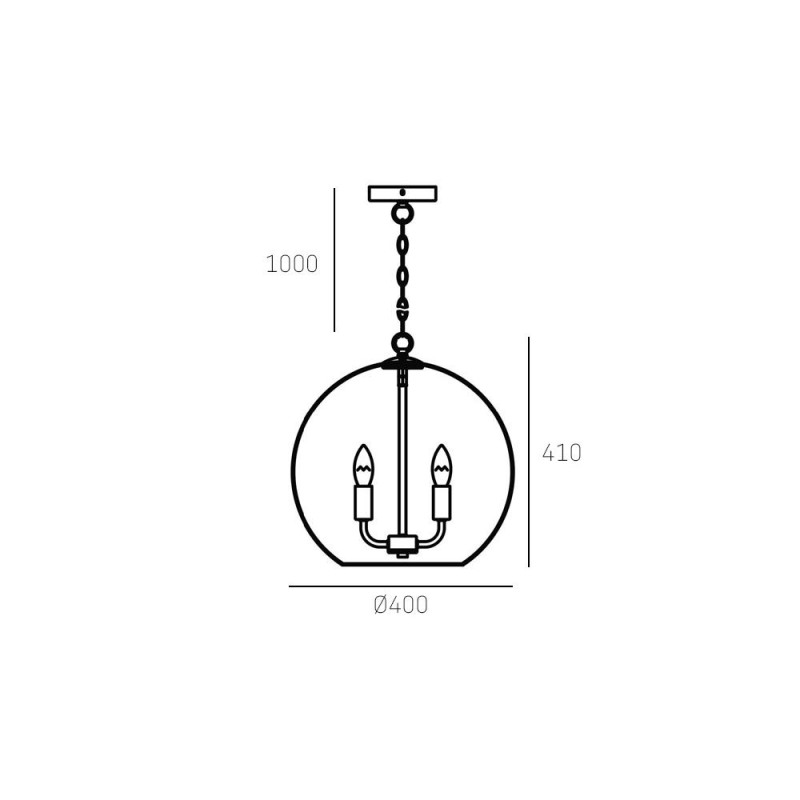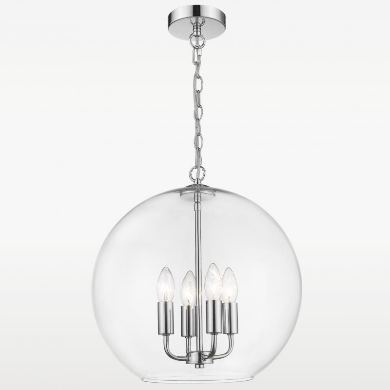Lampa wykonana z metalu chromowanego ze szklanym kloszem w kształcie kuli wewnątrz której umieszczono cztery źródła światła. Długość zwisu lampy 141 cm, średnica lampy 40 cm, wysokość klosza 41 cm. Możliwość stosowania żarówek LED.