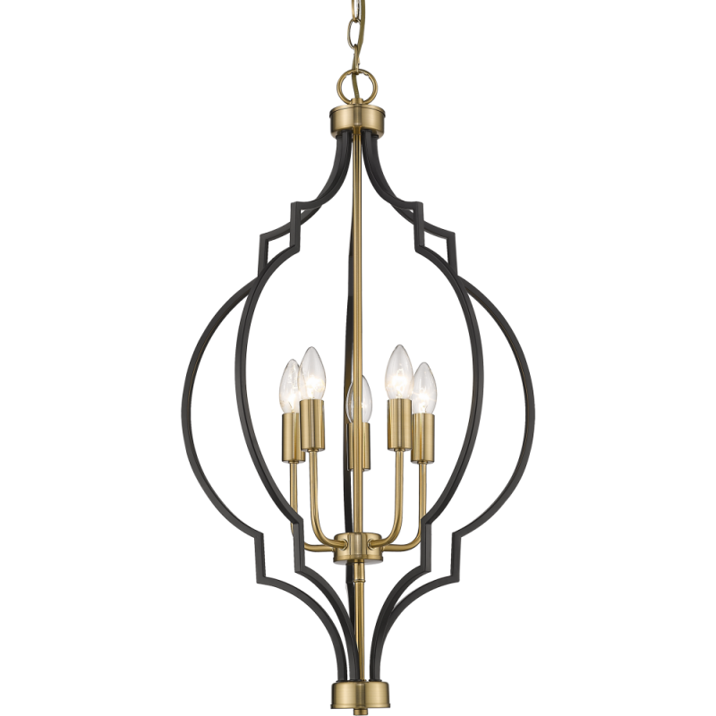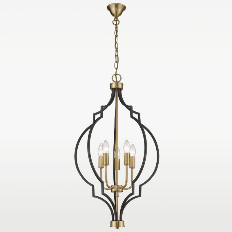 Wykonana z wysokiej jakości metalu w kolorze czarnym z kloszem inspirowanym marokańską koniczyną w środku którego na złotych świecznikach umieszczono źródła światła. Maksymalna długość zwisu lampy 180 cm, średnica lampy 45 cm, wysokość klosza 80 cm. Możliwość zastosowania żarówek Led