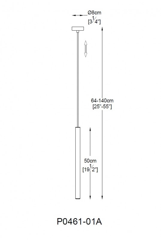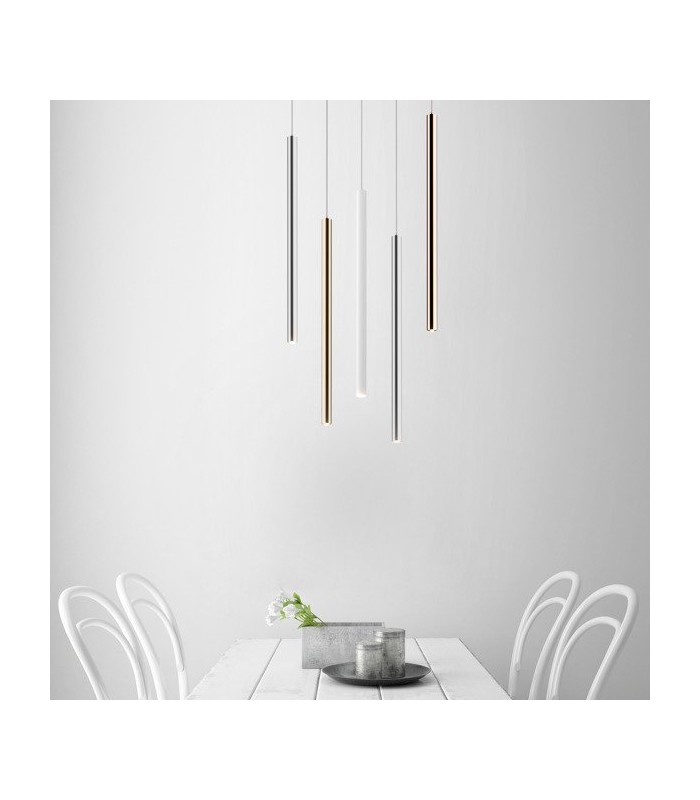 Wykonana w technologii Led z wysokiej jakości metalu chromowanego z kloszem w kształcie wąskiej tuby. Źródłem światła lampy jest wbudowany LED 5W o strumieniu świetlnym 450lm i barwie światła 3000K. Długość zwisu lampy 140 cm, średnica klosza 3,2 cm, wysokość klosza 50 cm.
