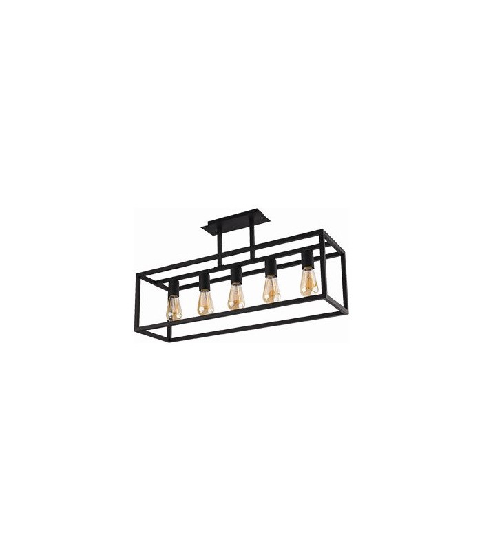 Lampa wykonana z wysokiej jakości stali lakierowanej w kolorze czarnym z kloszem w kształcie klatki, w której umieszczono źródła światła. Długość zwisu lampy 41,5 cm, szerokość lampy 76 cm. Możliwość stosowania żarówek LED.