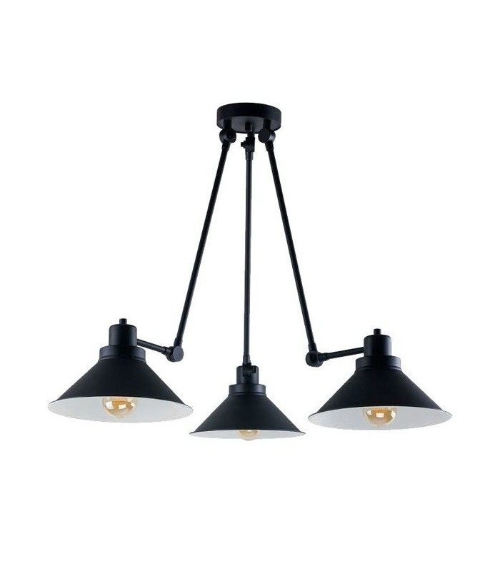 Lampa loftowa regulowana z łamanymi ramionami na przegubach, wykonana z wysokoiej jakości stali lakierowanej z kloszami czarnymi z zewnątrz i białymi w środku. Długość zwisu lampy 61 cm, szerokość lampy 61-152 cm, średnica klosza 25 cm, wysokość klosza 16 cm. Możliwość stosowania żarówek Led