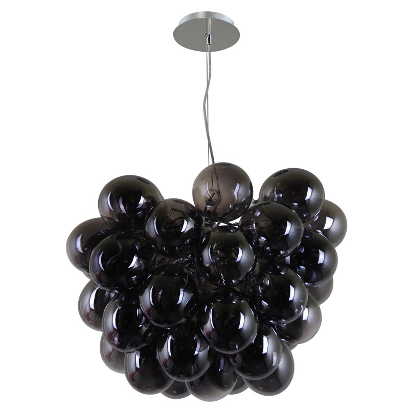 Wykonana z wysokiej jakości stali chromowanej z kloszem o nietuzinkowym kształcie z kul ze szkła dymionego. Maksymalna długość zwisu lampy 120 cm, średnica lampy 50 cm. Możliwość stosowania żarówek LED.