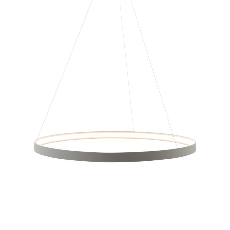Wykonana w technologii Led z wysokiej jakości metalu z kloszem w kształcie świecącego kręgu z białego tworzywa. Maksymalna długość zwisu lampy 250 cm, średnica lampy 78 cm. Źródłem światła lampy jest wbudowany Led 50W o strumieniu świetlnym 5520lm i barwie światła 3000K.