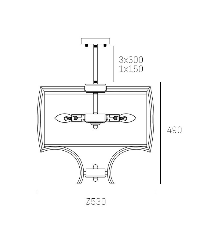 Wykonana z wysokiej jakości metalu niklowanego z białym abażurem o nietuzinkowym kształcie wykonanym z półokręgów z ramionami nawiązującymi do marokańskiej kończyny. Długość zwisu lampy 154 cm, średnica klosza lampy 53 cm, wysokość klosza 49 cm. Możliwość stosowania żarówek LED.