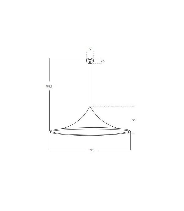 Wykonana z wysokiej jakości aluminium w kolorze czarnym z kloszem w kształcie stożka na czarnym kablu. Długość zwisu lampy 153,5 cm, średnica klosza 90 cm, wysokość klosza 30 cm. Stosować żarówki Led