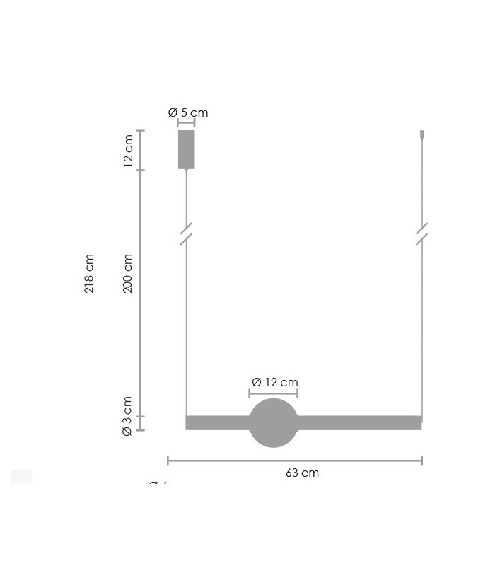 Wykonana z wysokiej jakości metalu z kloszem w kształcie długiej tuby z białego tworzywa i okrągłym elementem dekoracyjnym z metalu w kolorze czarnym. Źródłem światła lampy jest wbudowany led 12W o strumieniu świetlnym 1080lm i barwie światła 3000K. Maksymalna długość zwisu lampy 218 cm, szerokość lampy 63 cm x 12 cm, wysokość klosza lampy 12 cm.
