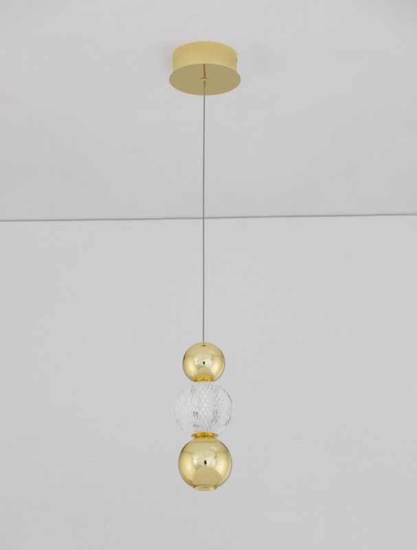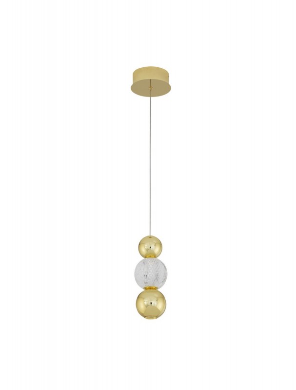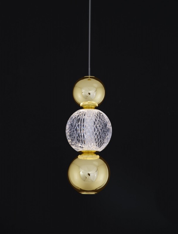 Nowoczesna lampa wisząca BRILLE w kolorze złotym która posiada wbudowane źródło światła. Długość lampy regulowana.