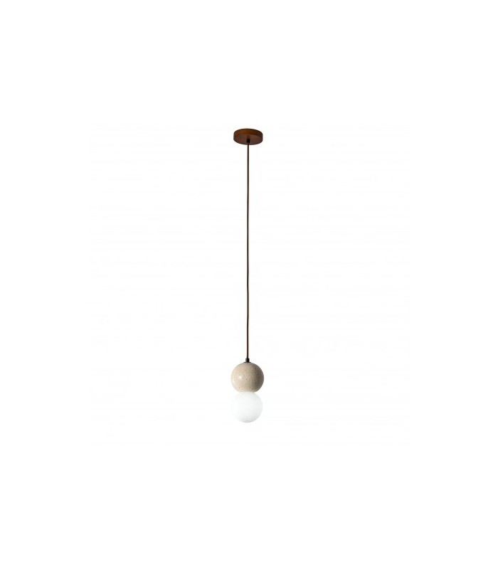 Lampa wisząca Bilo I to naturalne piękno i nowoczesny design, które tworzą niepowtarzalną całość. Dzięki zastosowaniu trawertynu, drewna i szkła jest kwintesencją harmonii natury i elegancji, swoje miejsce znajdzie we wnętrzach od klasycznych po nowoczesne. Lampa wisząca Bilo wnosi do wnętra ciepło i naturalny charakter.