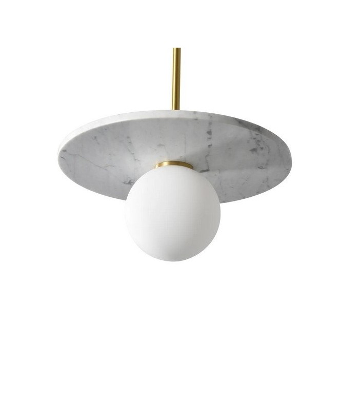 Lampa wisząca Bilo III to naturalne piękno i nowoczesny design, które tworzą niepowtarzalną całość. Dzięki zastosowaniu białego marmuru i szkła z elementami w kolorze mosiądzu jest kwintesencją harmonii natury i elegancji, swoje miejsce znajdzie we wnętrzach od klasycznych po nowoczesne. Lampa wisząca Bilo wnosi do wnętra ciepło i naturalny charakter.