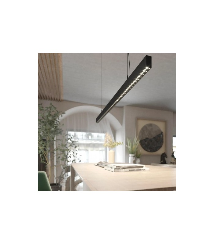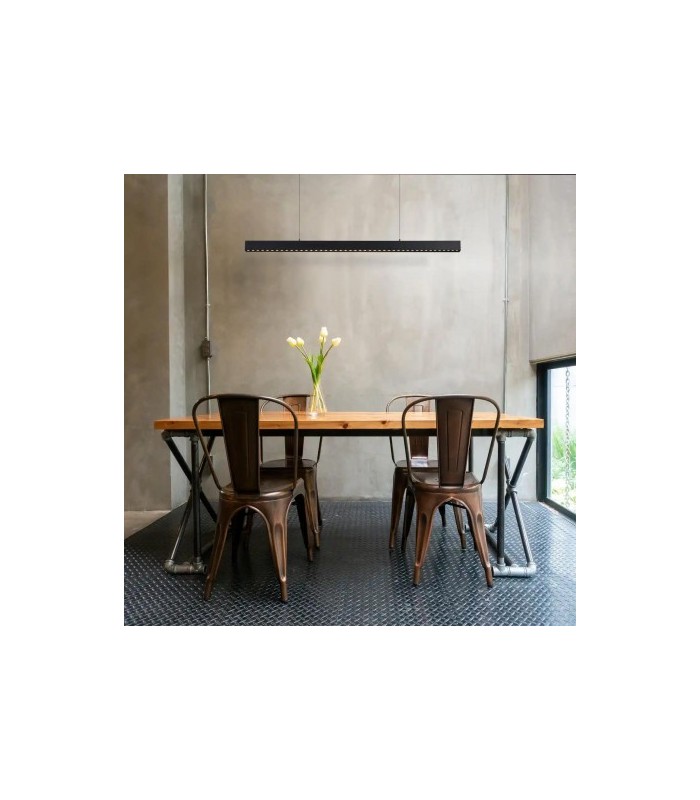 Lampa wisząca Sigi I jest produktem energooszczędnym, a dzięki prostej i solidnej konstrukcji z kloszem w kształcie belki wykonanej z wysokiej jakości aluminium w kolorze czarnym gwarantuje trwałość i odporność w codziennym użytkowaniu przez wiele lat.