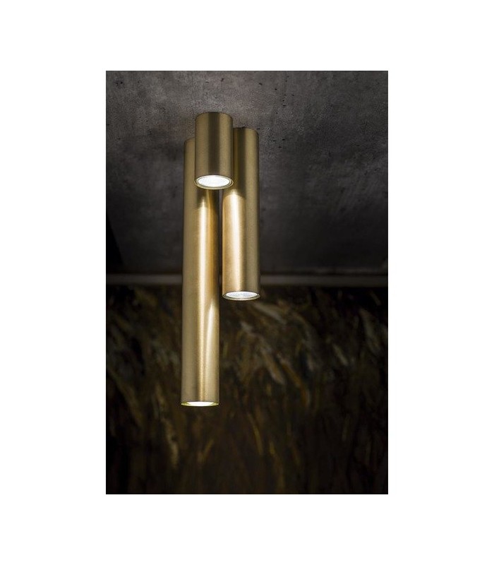 Wykonany z wysokiej jakości stali lakierowanej w kolorze mosiądzu w kształcie smukłej tuby. Długość zwisu lampy 40 cm, średnica lampy 5,5 cm. Możliwość stosowania źarówek Led