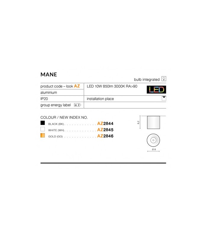 Wykonana w technologii Led z wysokiej jakości metalu i aluminium w kolorze białym z kloszem w kształcie tuby. Źródłem światła lampy jest wbudowany Led 10W o strumieniu świetlnym 850lm i barwie światła 3000K. Wysokość lampy 8,2 cm, średnica lampy 8 cm.