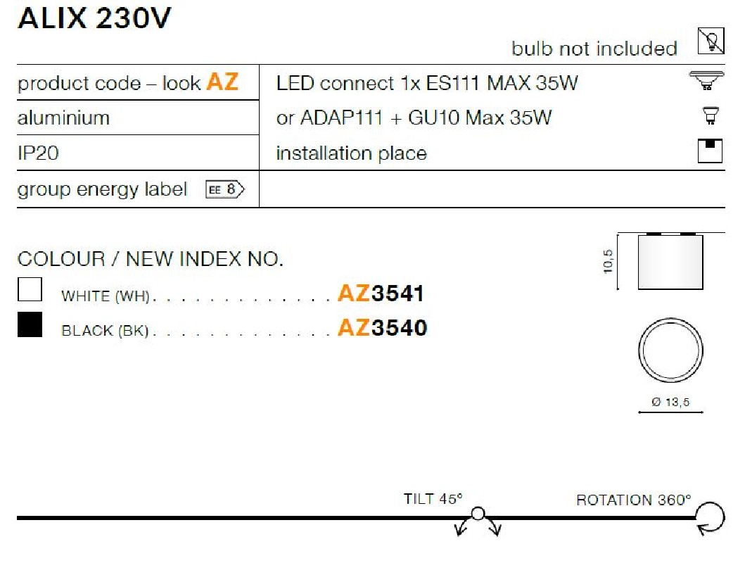 Oprawa regulowana, wykonana z wysokiej jakości aluminium w kolorze czarnym. Wysokość lampy 10,5 cm, średnica lampy 13,5 cm. Możliwość stosowania żarówek Led