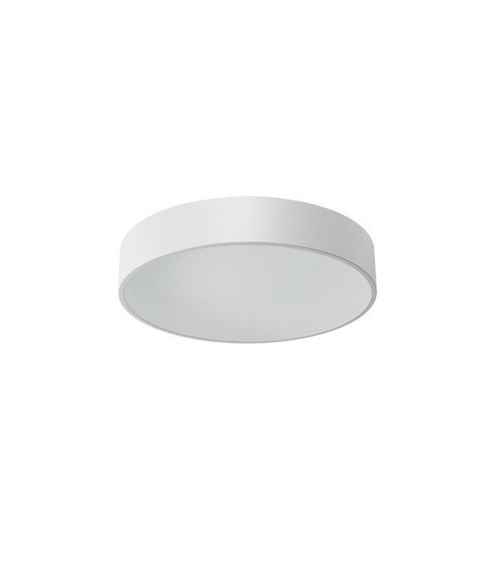 Wykonany z wysokiej jakości stali malowanej proszkowo w kolorze biały mat struktura z przesłoną od spodu lampy z poliwęglanu zamiast szkła przez co lampa jest bardziej odporna na uszkodzenia. Średnica lampy 60 cm, wysokość lampy 9 cm. Możliwość stosowania żarówek Led.