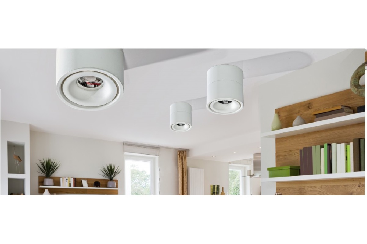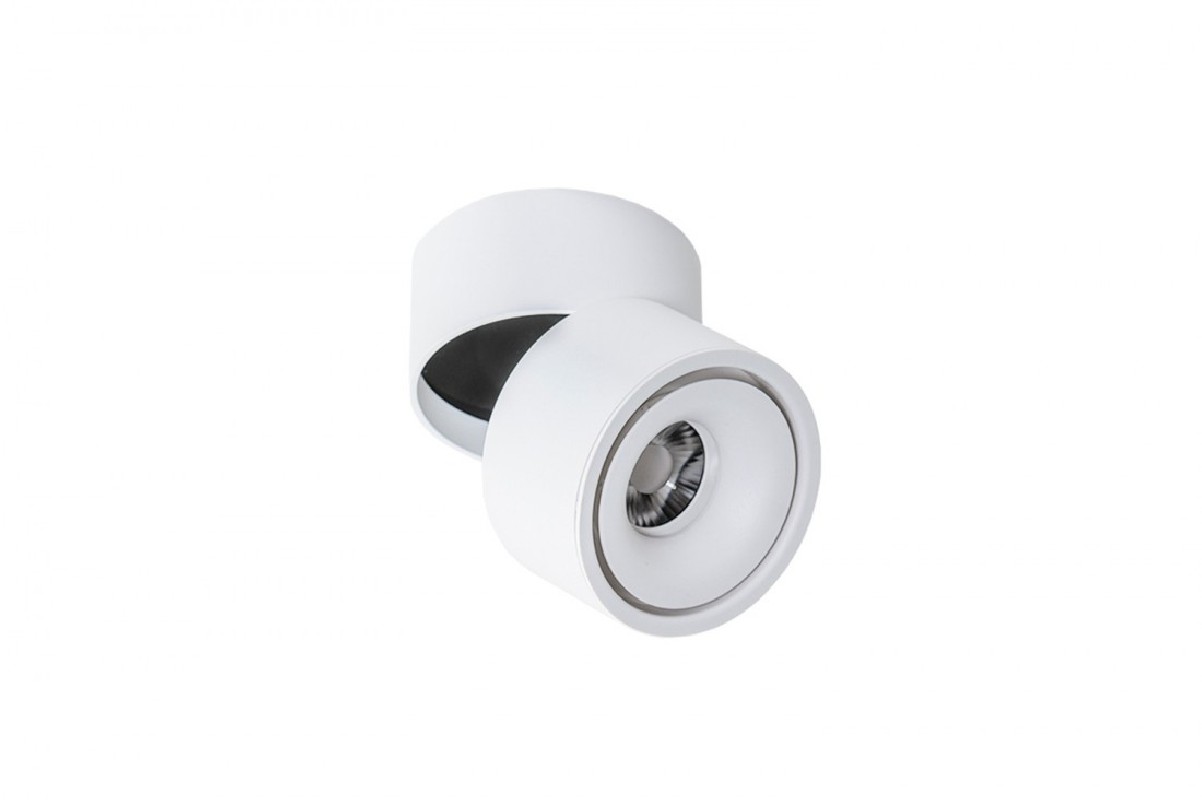 Oprawa regulowana, wykonana w technologii Led z wysokiej jakości metalu i aluminium w kolorze białym. Średnica lampy 10 cm, wysokość 10 cm. Źódłem światła lampy jest wbudowany Led 12W o strumieniu świetlnym 850lm i barwie światla 3000K