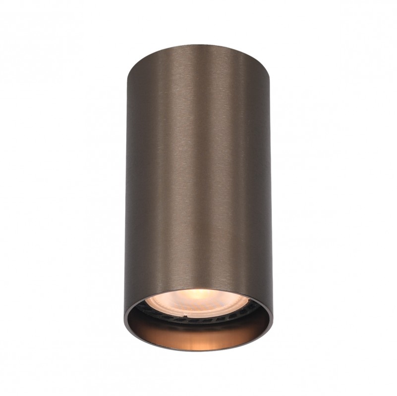 Wykonana z wysokiej jakości aluminium w kolorze brązowym. Wysokość lampy 10 cm, średnica lampy 5,4 cm. Lampa na wymienne żarówki GU10. Stosować żarówki Led