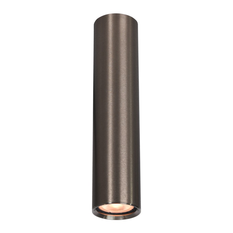 Wykonana z wysokiej jakości aluminium w kolorze brązowym. Wysokość lampy 24 cm, średnica lampy 5,4 cm. Lampa na wymienne żarówki GU10. Stosować żarówki Led