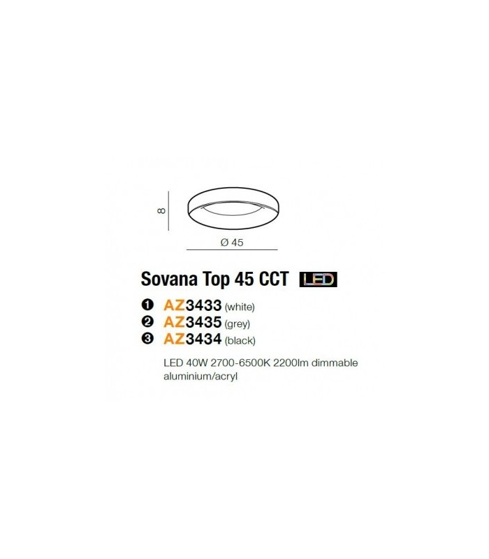 Atutem plafonu Sovana 45 Led jest zdalne sterowanie oświetleniem za pośrednictwem wygodnego pilota, dzięki któremu można nie tylko włączyć i wyłączyć lampę, ale też zmienić natężenie lub barwę światła w zakresie od 2700K do 6500K.
