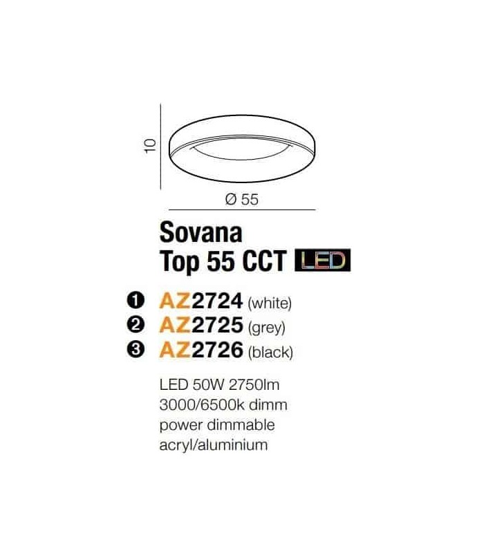 Atutem plafonu Sovana 55 Led jest zdalne sterowanie oświetleniem za pośrednictwem wygodnego pilota, dzięki któremu można nie tylko włączyć i wyłączyć lampę, ale też zmienić natężenie lub barwę światła w zakresie od 2700K do 6500K.